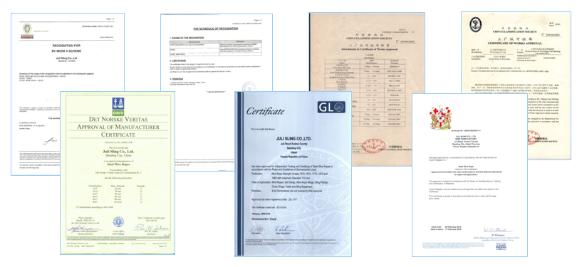 巨力索具致力于纜繩和繩網(wǎng)領(lǐng)域的技術(shù)創(chuàng)新,為客戶提供高品質(zhì)的產(chǎn)品。巨力纜繩產(chǎn)品通過了中國(guó)船級(jí)社CCS認(rèn)證、美國(guó)船級(jí)社ABS認(rèn)證、英國(guó)船級(jí)社LR認(rèn)證、法國(guó)船級(jí)社BV認(rèn)證、德國(guó)船級(jí)社GL認(rèn)證、挪威船級(jí)社DNV認(rèn)證等一系列權(quán)威認(rèn)證。