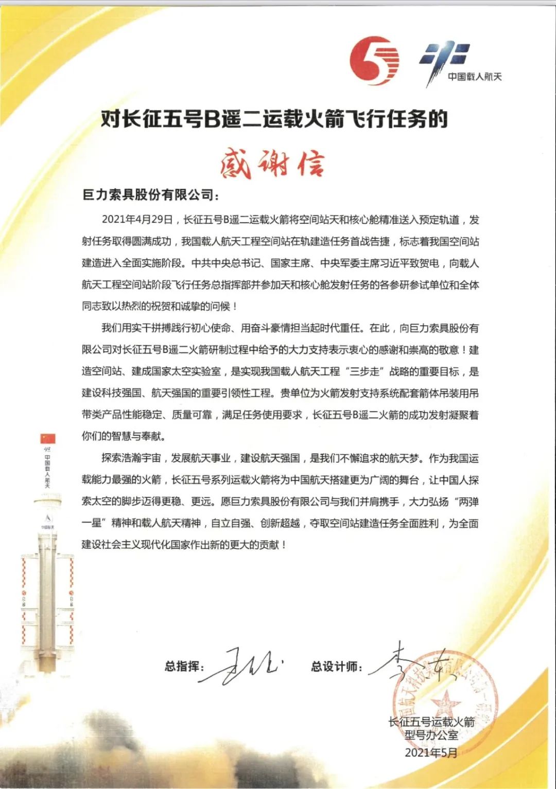 仰望星空又腳踏實地,巨力索具懷揣敬畏與熱愛,將繼續緊隨航天事業發展的腳步!