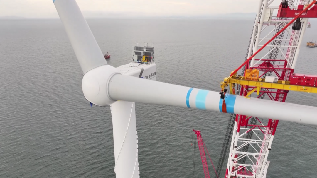 廣西首個海上風電項目首臺風機吊裝