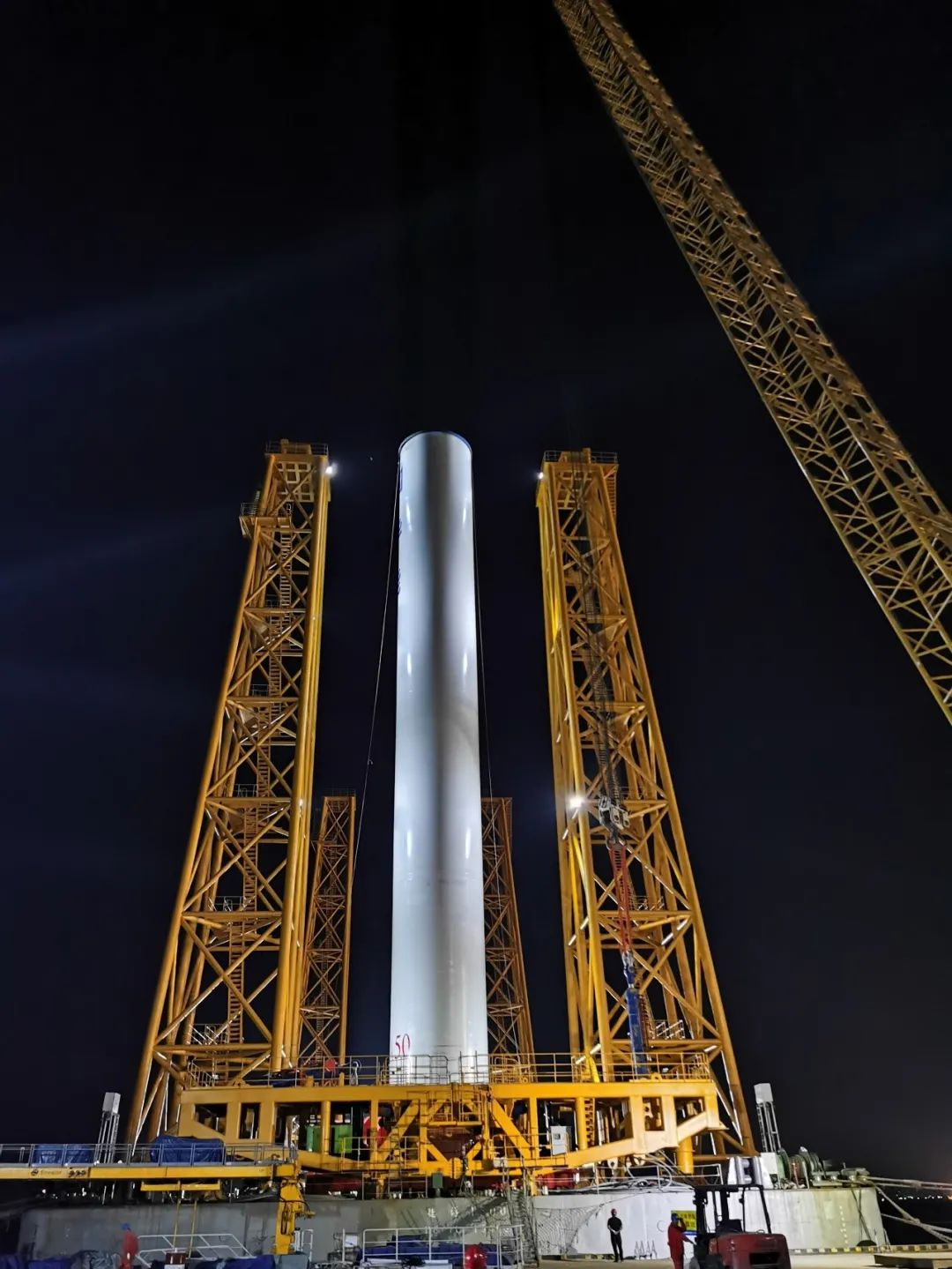 巨力人面對(duì)疫情、臺(tái)風(fēng)(煙花)、炎熱酷暑(近40°C高溫)多重不利因素條件下迎難而上,在做好防護(hù)同時(shí),有序組織生產(chǎn),保安全、搶抓工期。并于8月18日完成風(fēng)機(jī)陸上拼裝,8月19日完成首臺(tái)風(fēng)機(jī)整體吊裝。