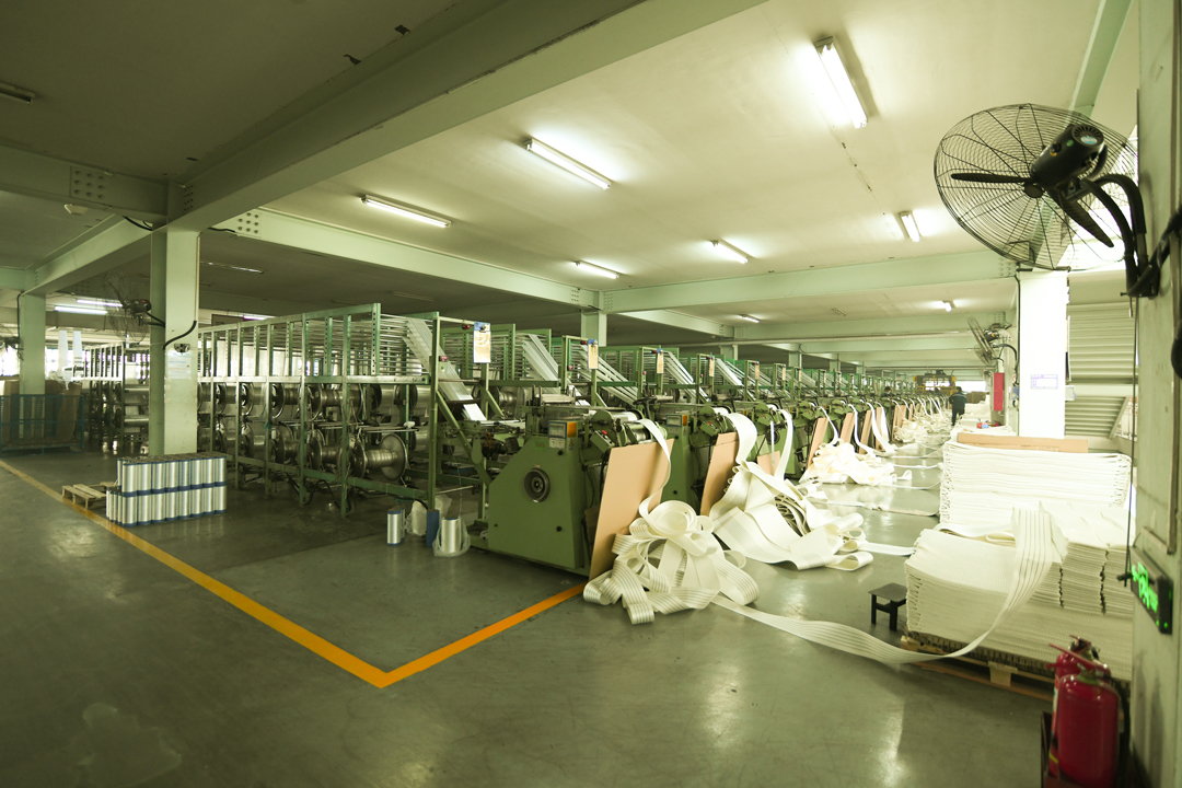 巨力索具股份有限公司吊裝帶制造總廠,擁有世界先進的生產設備千余臺套,包括瑞士繆勒織帶機,德國染整機、日本全自動縫紉機、全自動下料機、西班牙的合股捻芯機等。擁有最完善的檢測試驗設備,年產量達2 萬噸以上,是目前生產規模最大,品種齊全的軟索具生產基地。
