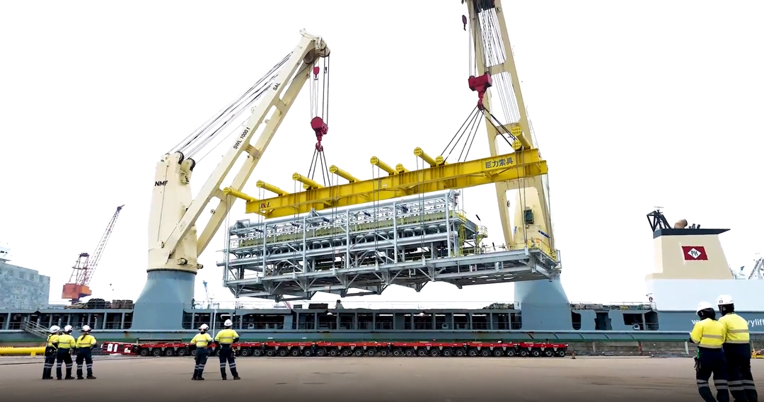 巨力索具主要負(fù)責(zé)該項(xiàng)目模塊的吊裝,分別提供了額定載荷為600T、300T、690T的吊框,吊裝能力為55T、75T、100T的卸扣及6種不同規(guī)格的無(wú)接頭繩圈,并提供專業(yè)吊裝方案,全程保障模塊吊裝的順利進(jìn)行。