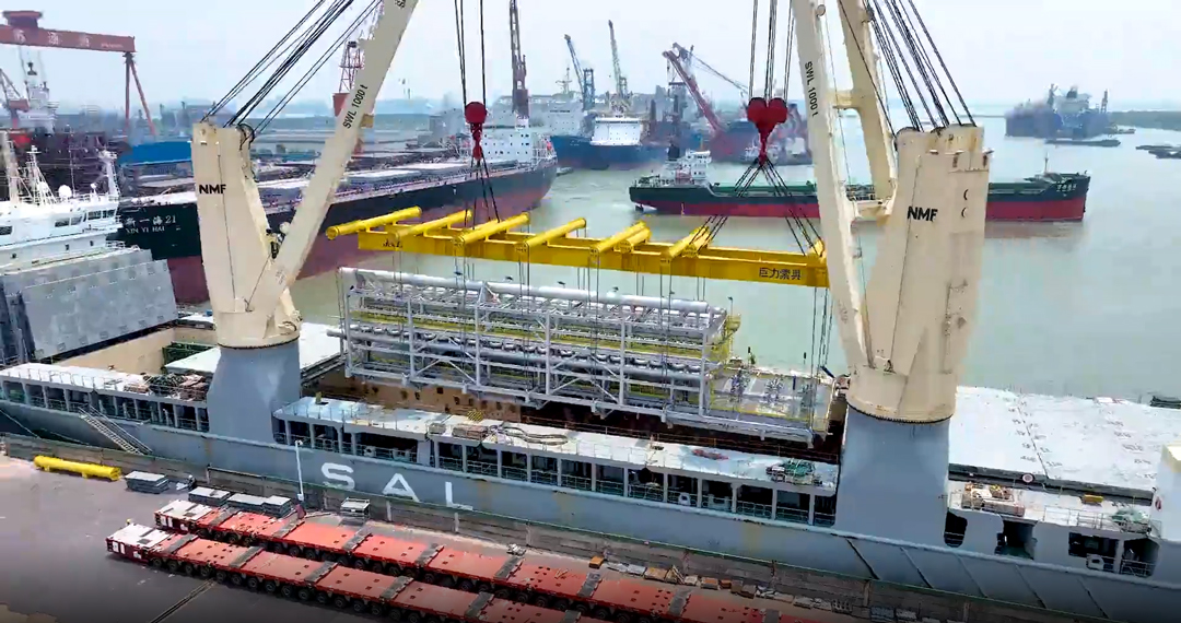 據(jù)了解模塊建造由森松(江蘇)重工有限公司承接。其負(fù)責(zé)人介紹:“根據(jù)計(jì)劃,我們將建造99個(gè)煉油模塊,總重量超過(guò)23000噸。這些模塊會(huì)通過(guò)水運(yùn),分批發(fā)往伊拉克,并于2023年底交付完成。”