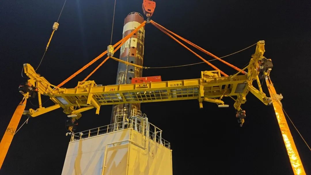 巨力索具為本次全程吊裝保駕護(hù)航,提供的50噸折疊式海上單葉片吊具實(shí)現(xiàn)單個(gè)風(fēng)電葉片在空中與輪轂的對(duì)接安裝。