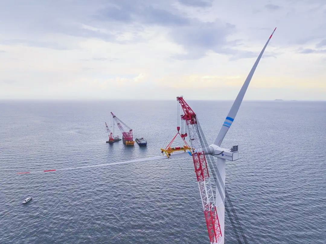 據(jù)悉,本次吊裝的風(fēng)電機(jī)組單支葉片長(zhǎng)111.5米、重42噸,葉輪掃風(fēng)面積40627平方米。