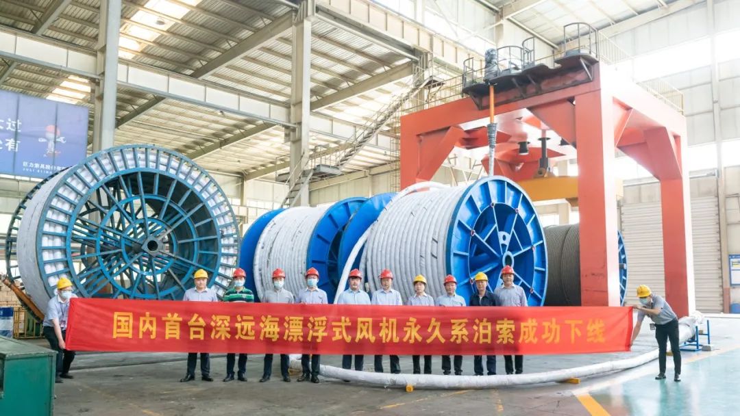 2021年5月25日,由巨力索具自主研發生產的國內首套海上漂浮式風機永久系泊索順利通過三峽能源、三峽上海院、惠生重工項目負責人的聯合驗收。該套系泊索應用在全球首臺抗臺風型浮式海上風機,也將為后續我國深遠海海上風電項目的開發以及海上風電與海洋牧場、海水制氫等產業的融合發展奠定堅實基礎。